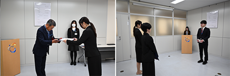 緊張のためか最初は固かった表情も時間とともに次第にほぐれ、真っ直ぐな視線からは来春の入社への緊張と期待が窺えました。